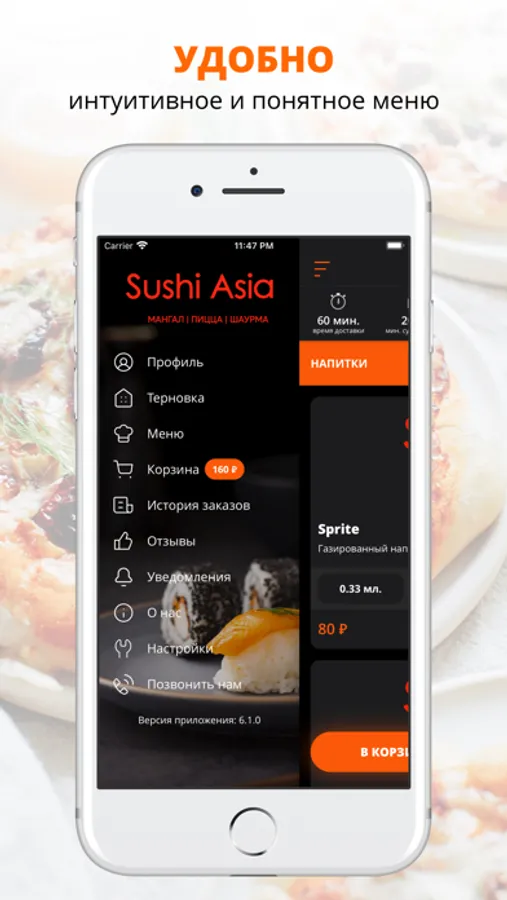 Заказывайте Ваши любимые блюда у нас, и Вы останетесь довольны качеством сервиса. У нас работают лучшие повара, а курьеры приятно порадуют вежливостью и быстрой доставкой.
