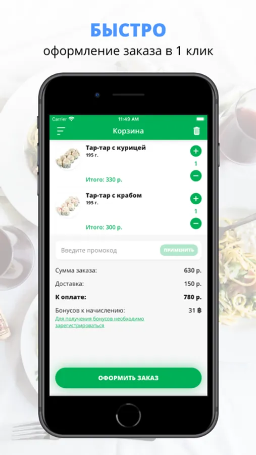 Доставка роллов, пиццы и горячих блюд по городу Казань. Большой ассортимент блюд на любой вкус. Бесплатная доставка по городу от 1000 рублей. Скидка 10% при самовывозе заказа. Скидка 20% именинникам в честь дня рождения в течение трёх дней.