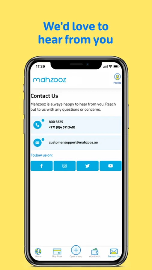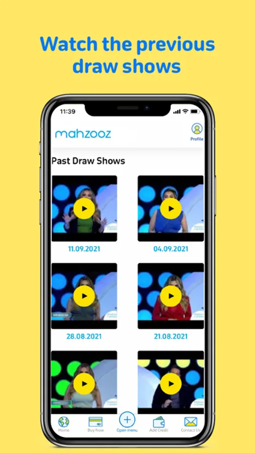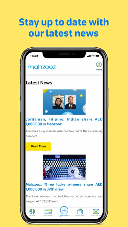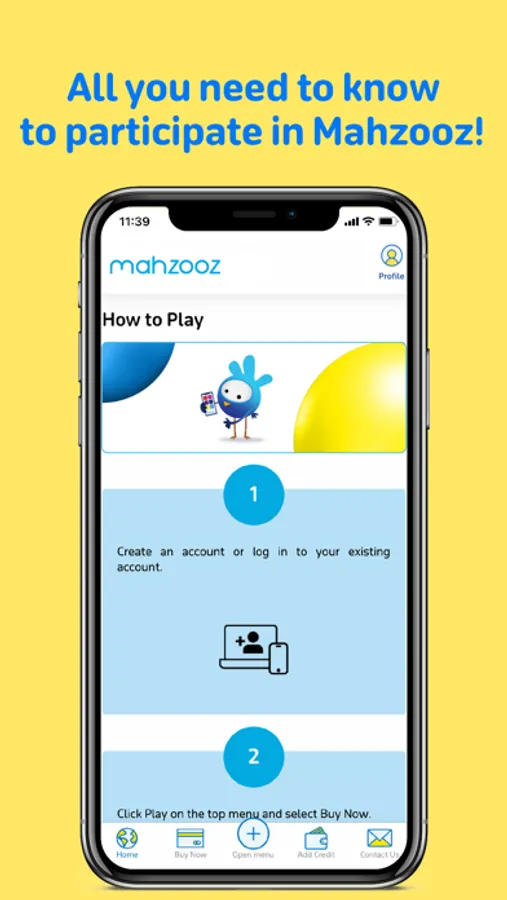 Download the app now to view your profile and get information about Mahzooz. Plus, don’t miss the live Mahzooz show every Saturday at 9 PM (UAE time).