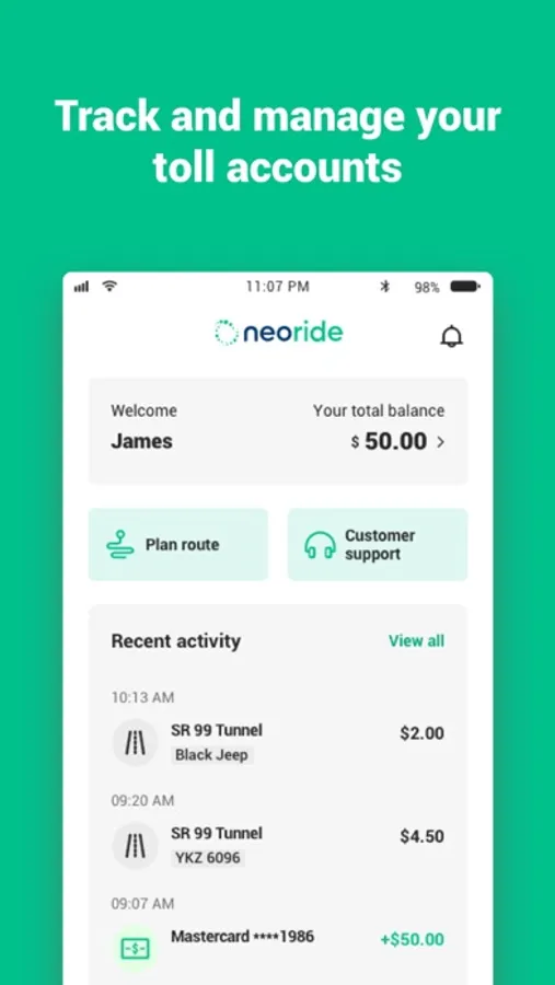 neoRide is an app designed to give choice back to the traveler. Pair with your toll tag to simplify your daily commute and travel experience by providing you with access to recent travel, payment and pricing information in a seamless way. Let’s demystify travel options, enable contactless payments and make pricing transparent to provide communities and commuters a peace of mind.