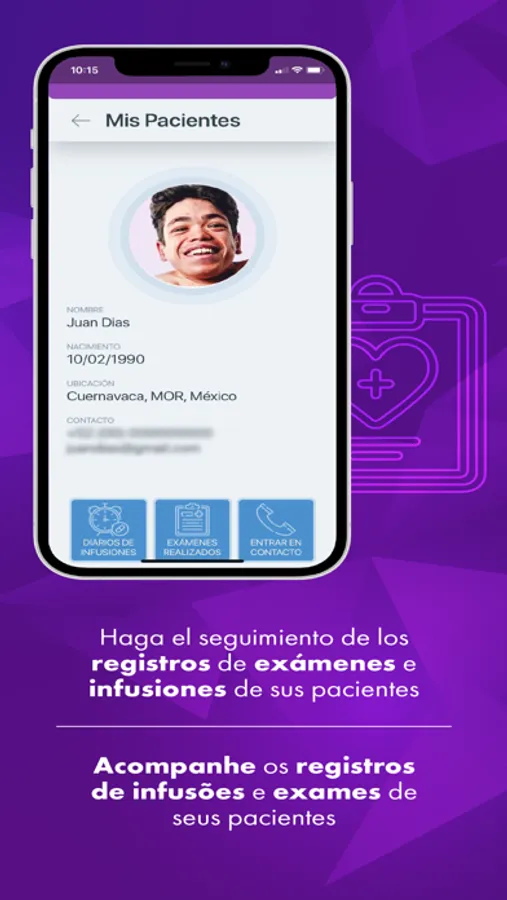 - Compartilhe seus registros de exames e infusões com seu médico tratante para o melhor acompanhamento de seu tratamento