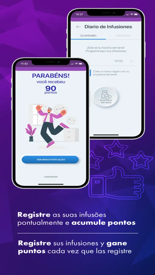- Registre suas infusões e ganhe pontos toda vez que você as registrar para celebrar suas conquistas
