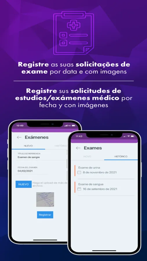 - Registre sus solicitudes de examen por fecha y con imágenes