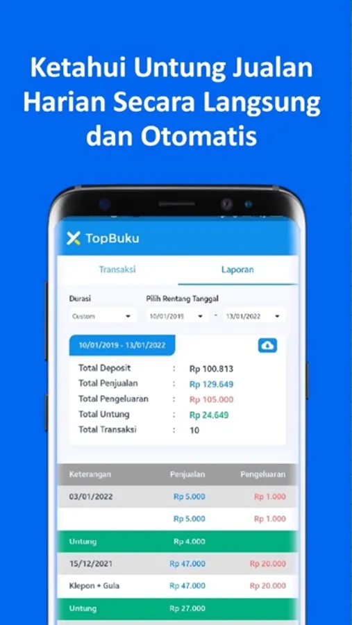 Sekarang kamu sudah tidak usah ribet-ribet menghitung untung dan omset penjualan harian kamu lagi, karena kini saatnya beralih ke pencatatan digital TopBuku.