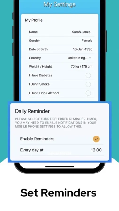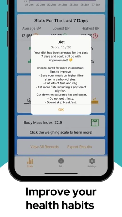 -Analyse the progress you are making using the intuitive graphs and statistics. Compare the graphs and stats against your lifestyle health score to see if the changes have proven effective.