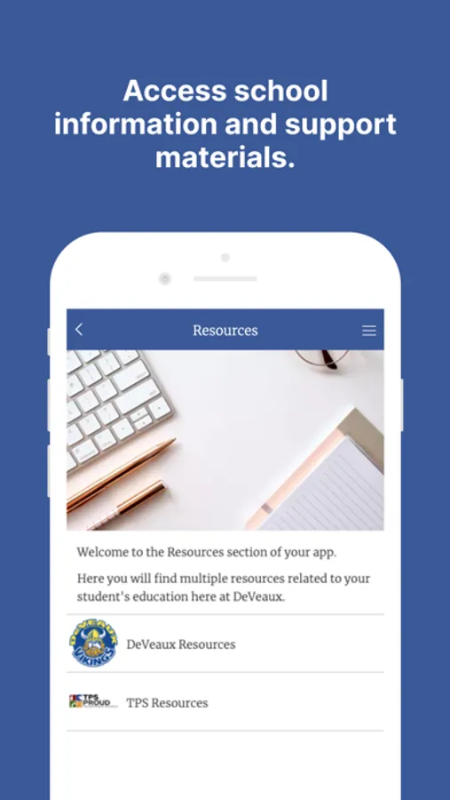 The DeVeaux app is designed to engage parents and help administrators communicate school related events and activities. Parents will be able to access information much quicker and administrators will be able to provide information with ease. DeVeaux is part of the TPS system.