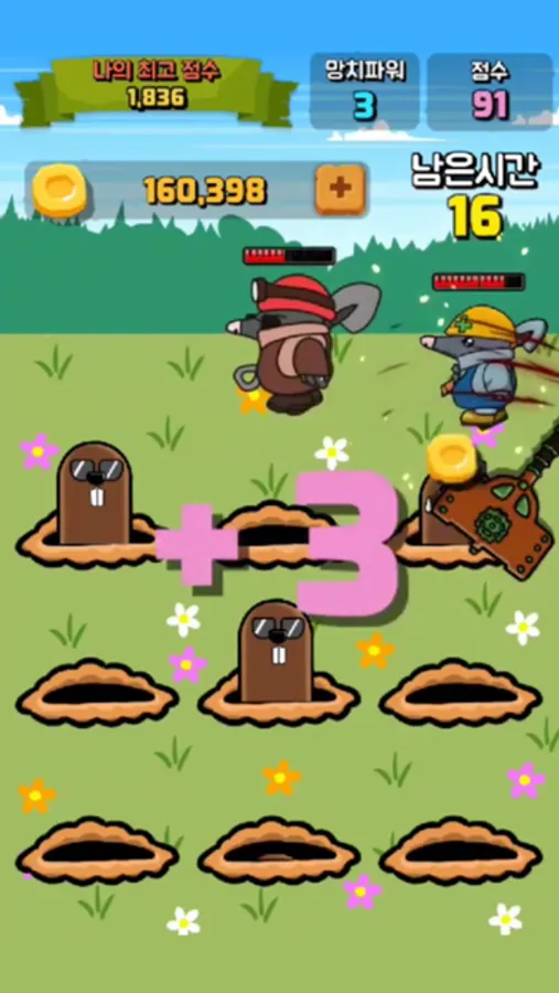 추억의 두더지게임! 마구 튀어나오는 귀여우면서 얄미운 두더지들을