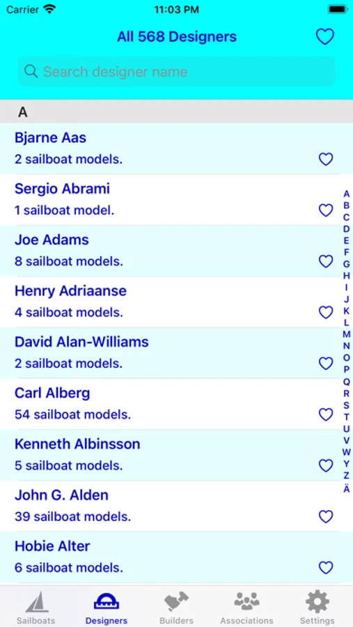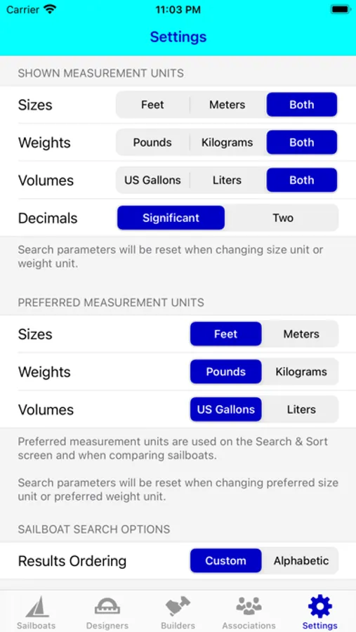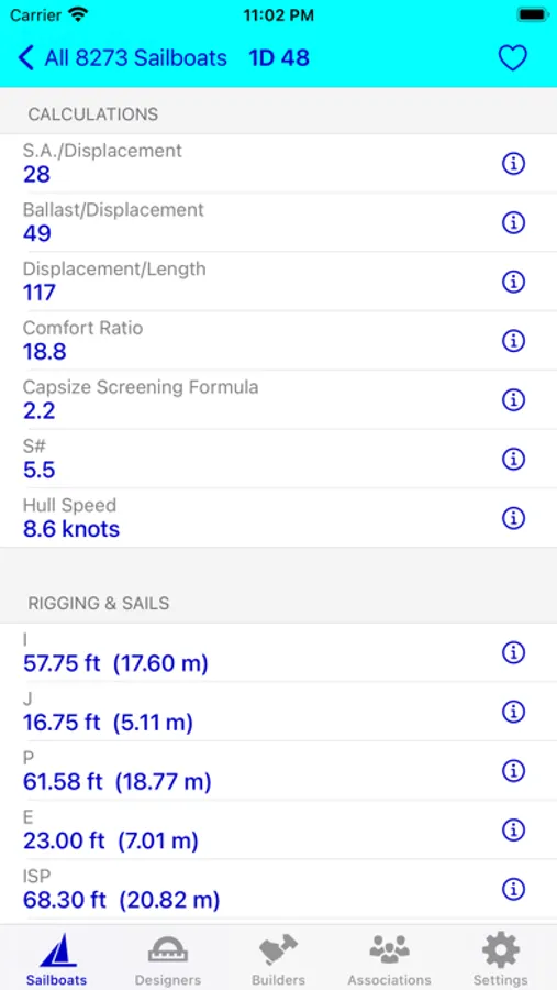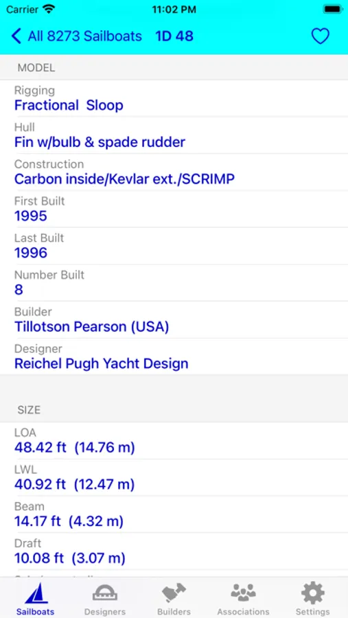 • Ability to select sailboats, designers, builders, and associations as your favorite.
