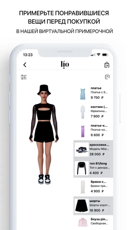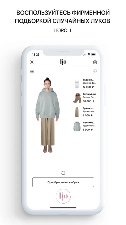В приложении доступна комфортная 3D-примерочная, благодаря которой перед покупкой Вы составите тотал лук из вещей, представленных на маркетплейсе. А онлайн стилист lioroll покажет, как сочетаются вещи разных брендов.