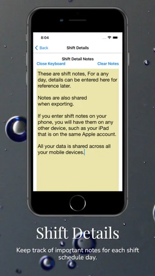 * Shift Detail Notes for each shift day