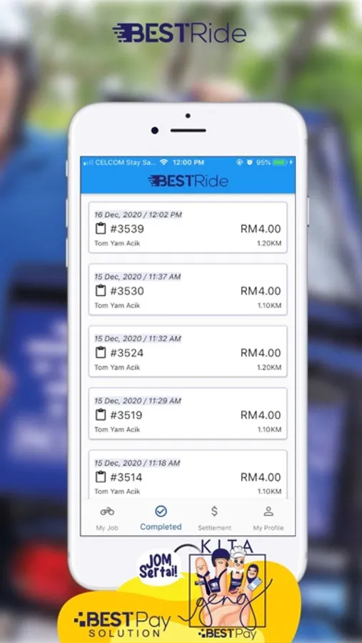 Additionally, this apps also help Bestride Riders to track down all the jobs and settlement for rider preferences. For those who interested to be our Bestride's Rider, please register at https://bestride.my/rider