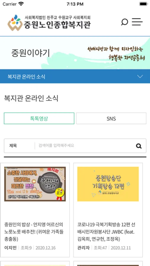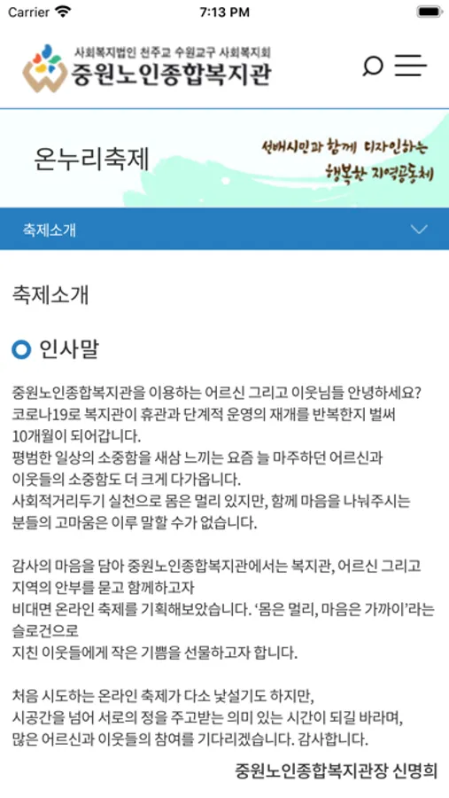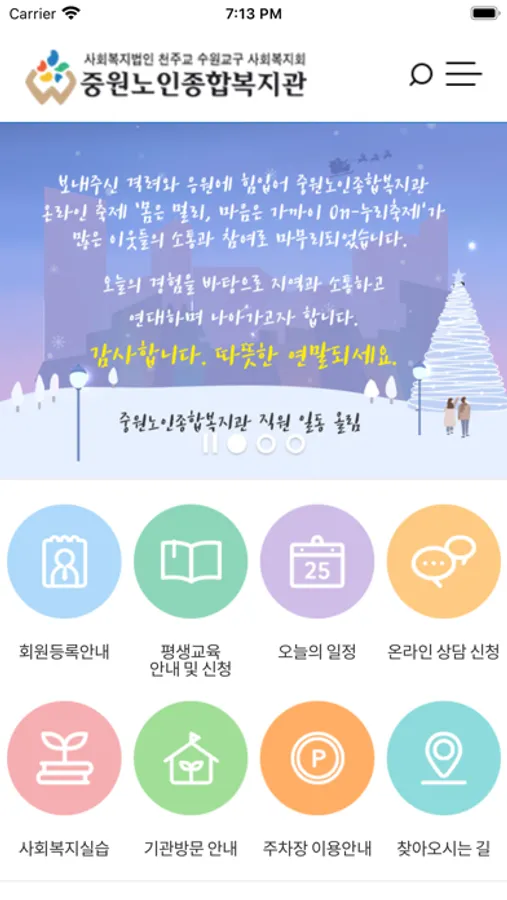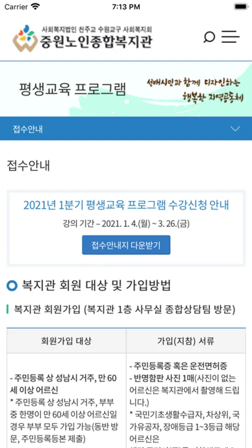 2007년에 개관하여 성남시 중원구 성남동(모란역 인근)에 위치한 중원노인종합복지관입니다.