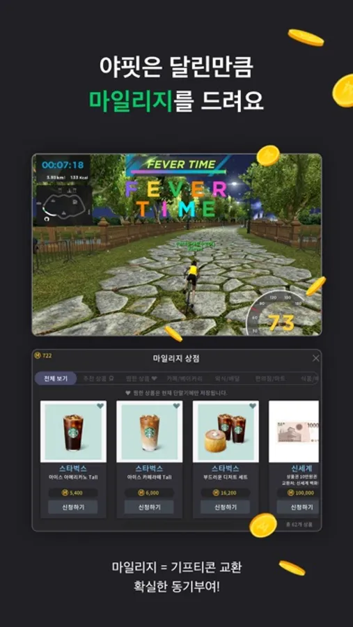 야핏은 달린 만큼 마일리지가 제공되어 매 순간 동기를 부여합니다.