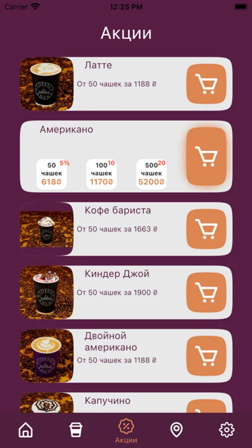 - возможность купить сразу партию кофейных напитков и получить скидку;