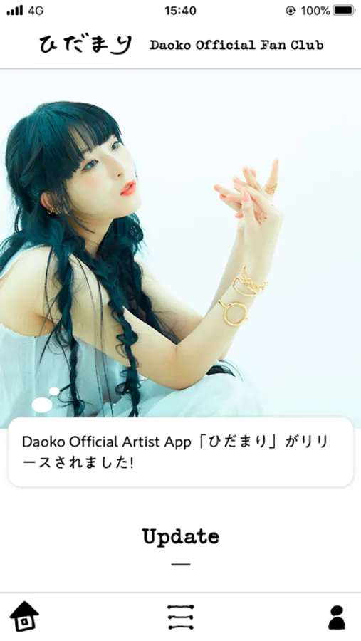Daoko Fan Club "ひだまり”の会員登録(アプリ内課金)を行うとライブチケット先行受付をはじめ、Daokoからの会員向けメッセージ、会員限定の最新情報、動画、ブログ、壁紙、限定グッズなどをお楽しみいただけます。
