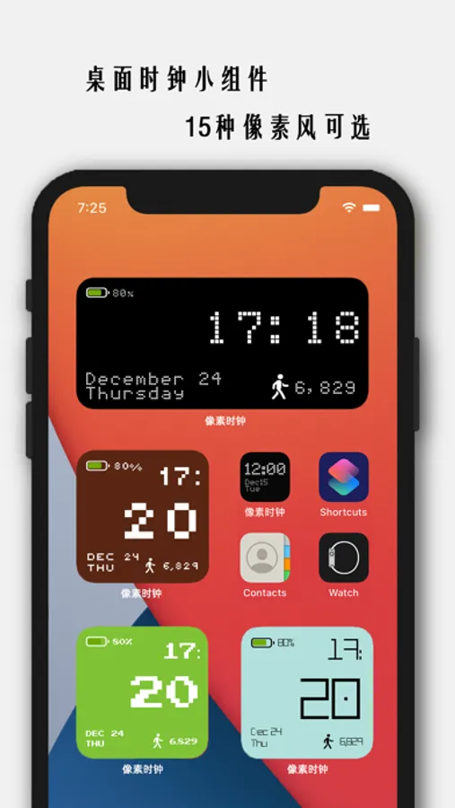 轻量级的显示时钟、步数和电量的桌面小组件App。