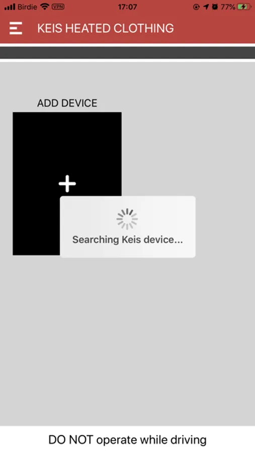 A loading screen will appear while scanning. Make sure that your BLUETOOTH Power Controller is plugged into your garment and switched on.