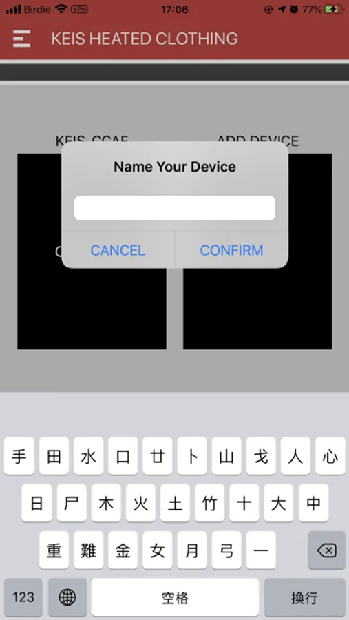 You will be asked to name the device button. Name your device controller buttons when using different Keis garments, with each button connected to a different BLUETOOTH Power Controller.