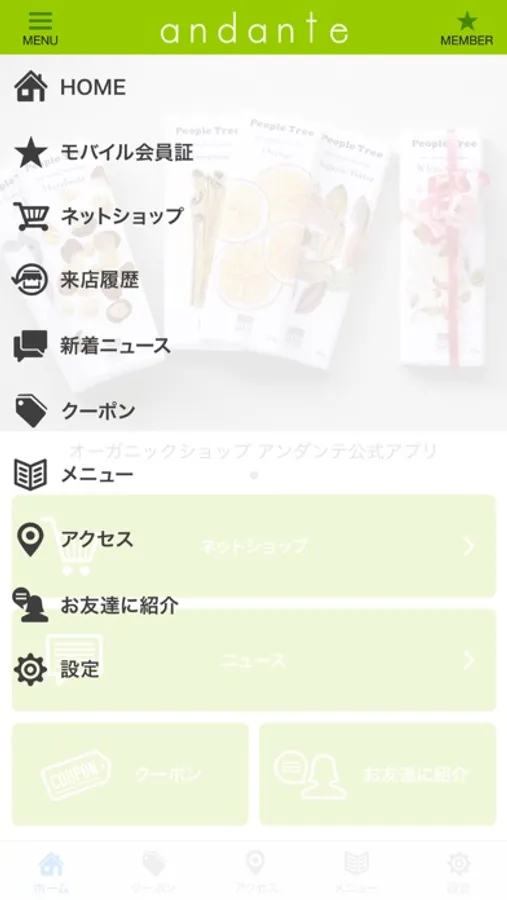 アンダンテはやさしい生活を応援するナチュラル雑貨のお店です。