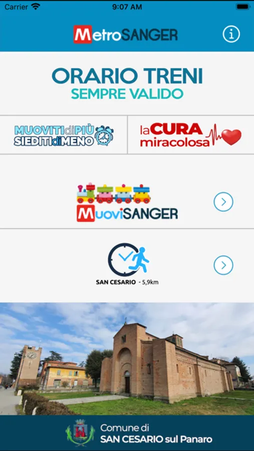 • MuoviSANGER per l’esercizio fisico della camminata veloce o della corsa lenta sulla metropolitana urbana pedonale, un “percorso vita” protetto e distante da strade ad alto traffico tracciato nel capoluogo San Cesario del Comune San Cesario sul Panaro (Modena), nella parte residenziale e densamente abitata.