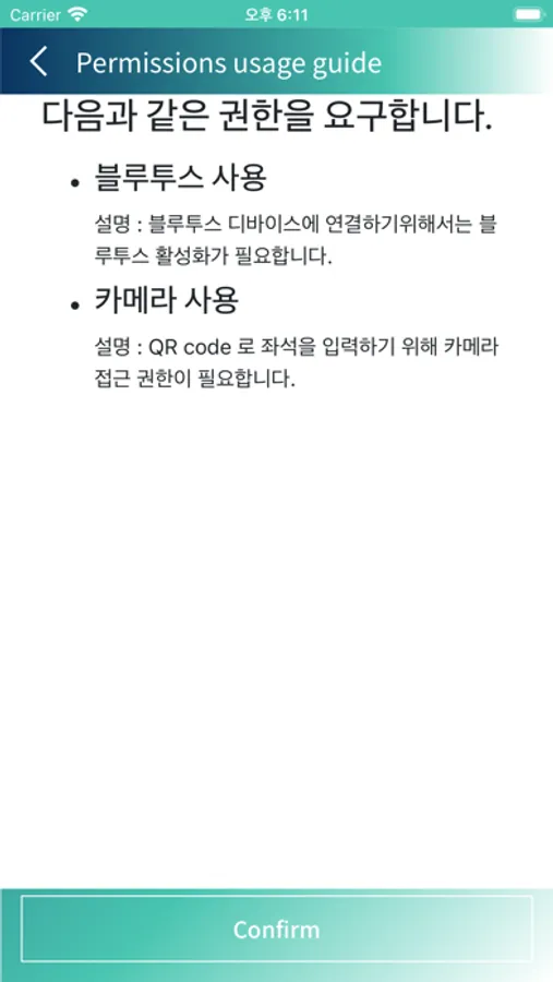 - 블루투스 : 밴드 연결을 하기 위해 블루투스 기능 활성화가 필요합니다.