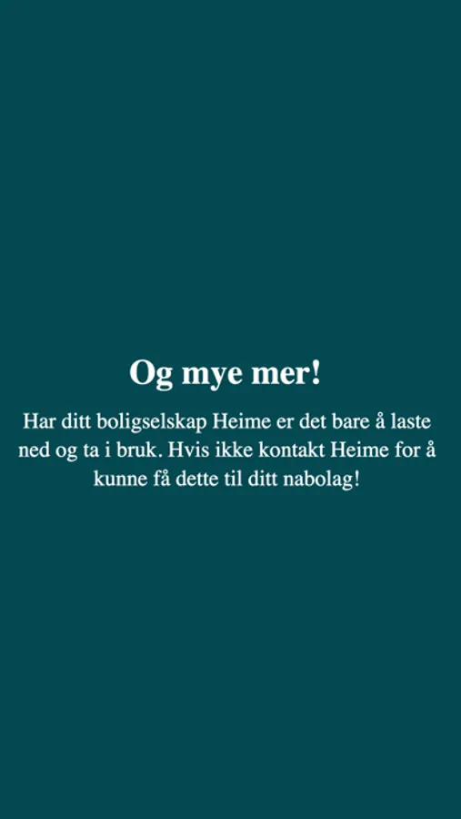 For å få tilgang til Heime må ditt boligselskap ha en avtale med Heime. Ta kontakt med vetle@heime.com så setter vi opp en testbruker.