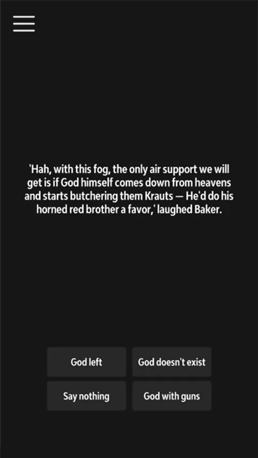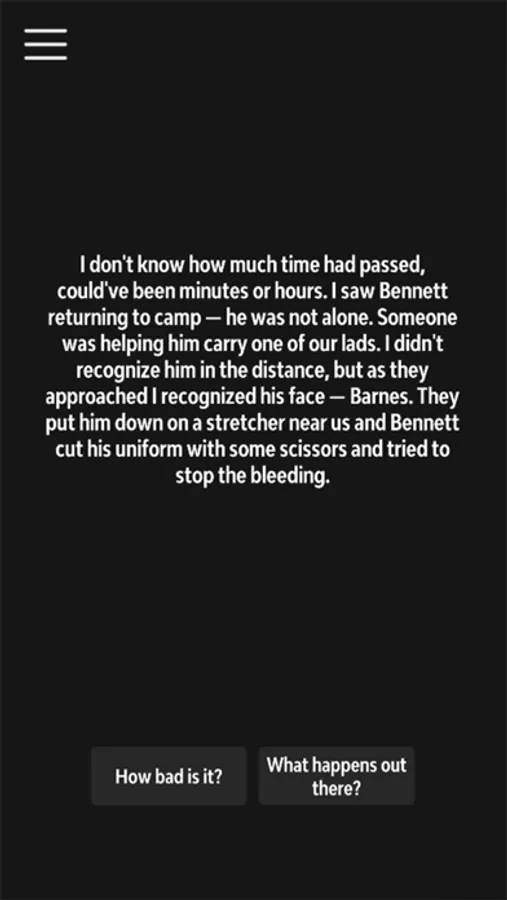 Foreshadow is a short interactive story set in 1944 during World War 2 in the Ardennes forest near Bastogne. You play as private Arnold Winters, and you get to decide what he says and what he does. The story is tailored by the player's decisions and the endings and outcomes will vary for each player. The Choice is Yours!