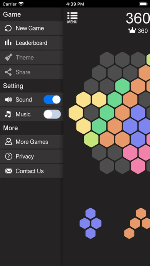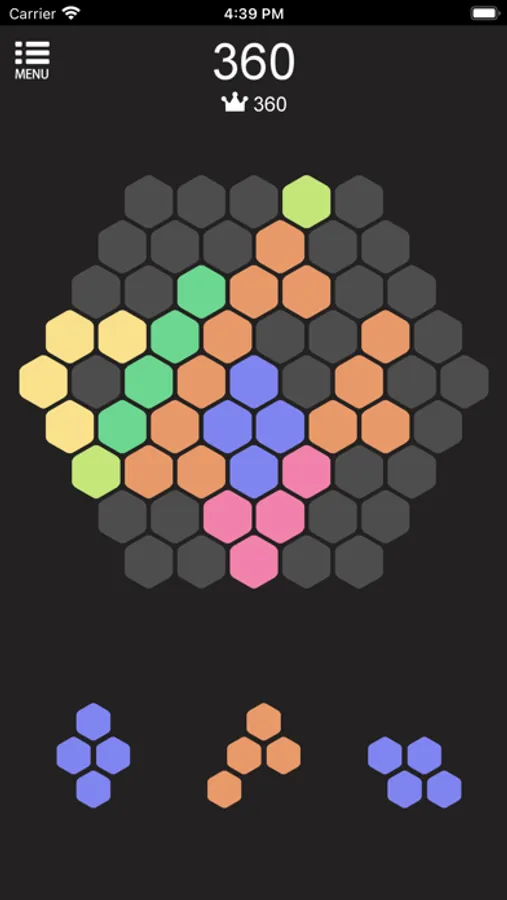 Drag the hexagon into the scene, as long as all the small hexagons combining just full of a straight line, you can eliminate!