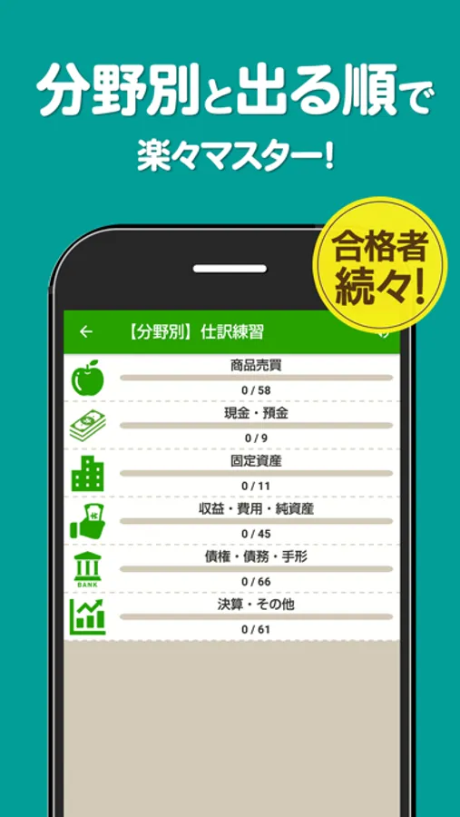 日商簿記3級、仕訳問題集アプリの決定版!基本から分野別、出る順までたっぷり796問題。
