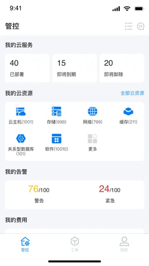 3. 自服务:通过统一的服务目录,即使非IT专业人员,也可以服务卡片的形式进行各种云资源的自服务申请,或是提交工单,由技术人员提供支持。平台提供完善的组织架构、角色和用户体系。通过策略驱动访问权限,为普通用户提供细粒度的角色和权限管理,资源与费用配额等,实现控制资源与服务的访问、申请以及规范。