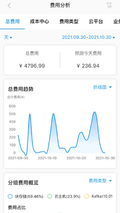 7. 用云成本分析和优化:申请时根据云服务内容动态计算费用,支持公有云、私有云等各种云资源。将云上费用按照规则进行分摊,让云资源的所有开支都一目了然。并提供优化建议,帮助您找出闲置资源,及时调整资源分配策略,节约云上费用。