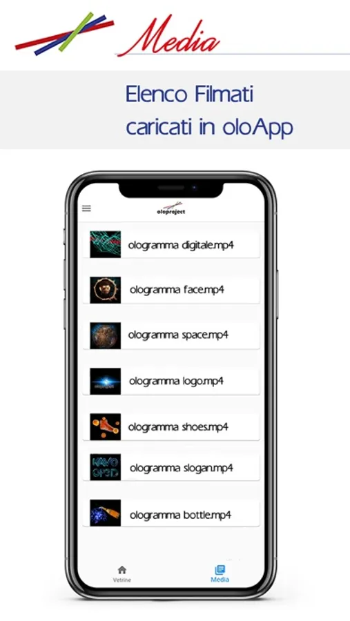 App. gestione contenuti multimediali per vetrine olografiche Oloproject