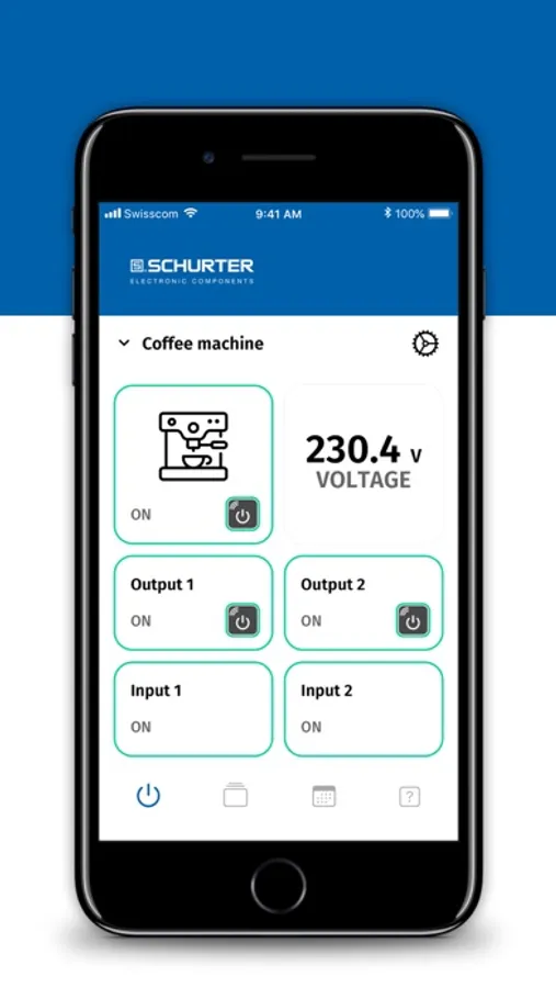 The SCHURTER Smart Connector app lets you easily control, monitor and configure your Smart Connector. Use the app to remotely switch on/off your device and check the energy consumption even when you are not at home.