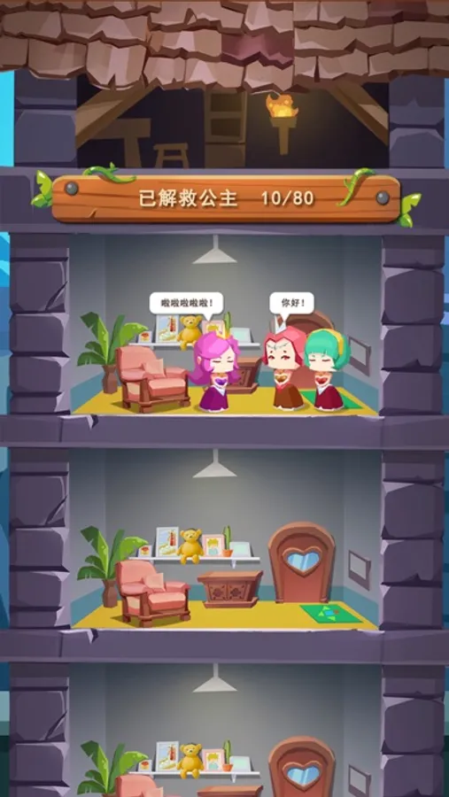一款射箭破关游戏,王子破解各类场景机关,击破牢笼解救公主。游戏内提供多套时装,可做收集每个关卡都绘制了不同的公主形象,每通关1个关卡就会将公主救回城堡,以图鉴包装的概念,强化游戏的整体概念传达。