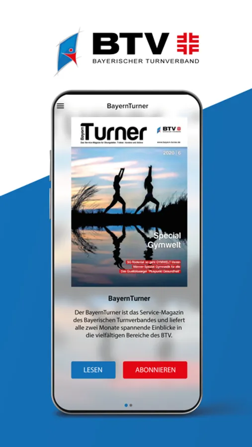 Du bist noch kein Abonnent, willst dich aber mit dem BayernTurner alle zwei Monate über die neuesten Trends, Geschehnisse und Tipps für deine Turnstunde informieren lassen? Dann hol dir jetzt dein Abo auf btv-turnen.de. Danach kannst du dich einfach in der App einloggen und los lesen.