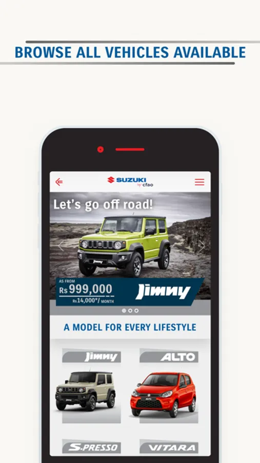 1. Explore the available Suzuki models at CFAO — photos, video, 360 interior view, pricing, available colours, and much more.