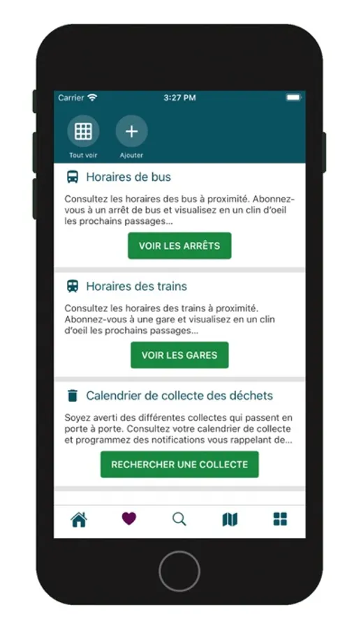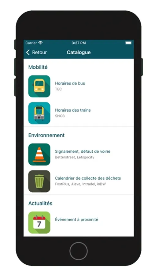 Après son installation, vous découvrirez la liste de l’ensemble des services accessibles depuis votre smartphone :