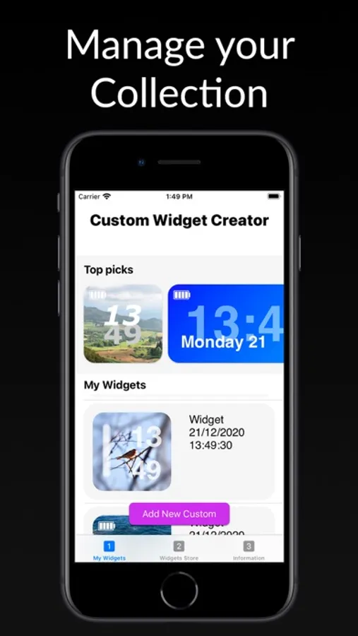 The app also includes a free prebuilt widgets collection which you can add to your widgets library.