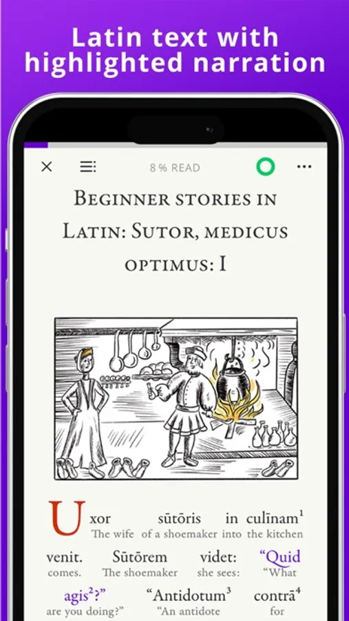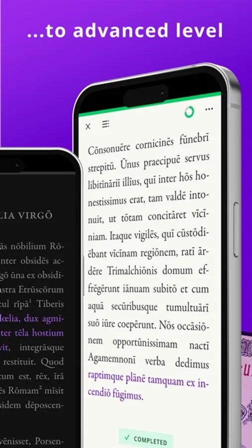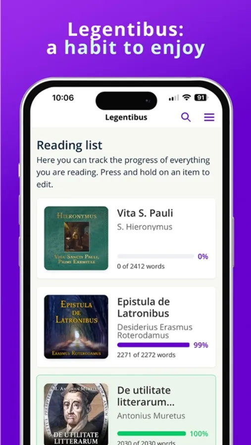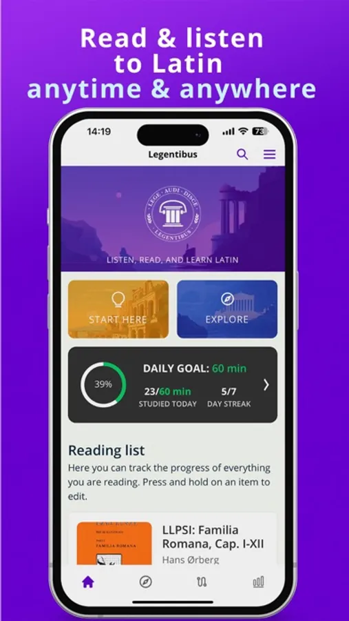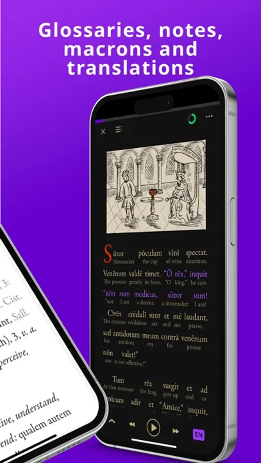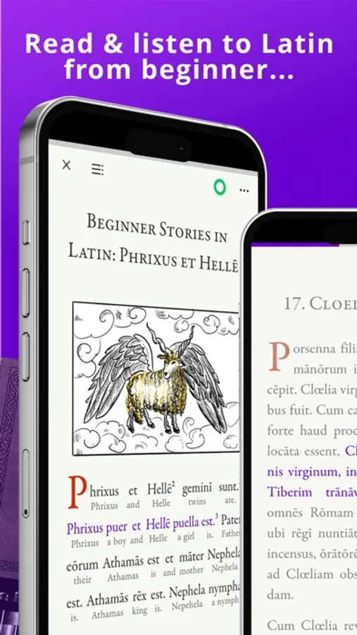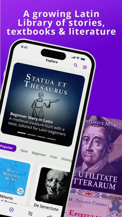 Legentibus is a language learning app and a library carefully curated for anyone interested in the Latin language. The unique combination of Latin texts with synchronized audio and integrated dictionaries gives you an unsurpassed learning experience. Dive into our ever-growing collection, from beginner stories to works by classical authors such as Cicero or Tacitus.