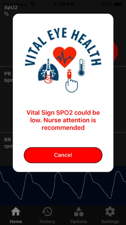 Vital Eye Health does not provide any medical diagnosis or interpretation. The App receives vitals data from a FDA approved Pulse Oximeter through Bluetooth connection. The App provides an entry table for the user to personally set low and high levels of vitals so that App can send text messages to select phone numbers if vitals are below or above the user entered high low levels. Vital Eye Health strongly recommends the user to seek physician diagnosis and not to interpret the vitals displayed for any health diagnosis purposes.