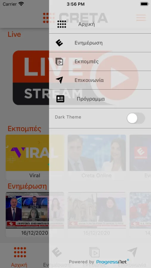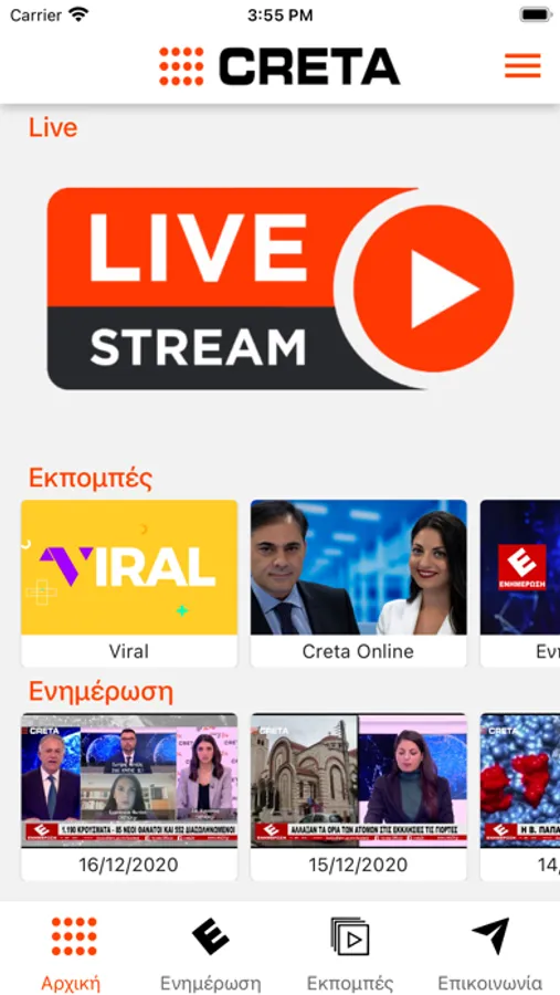 - Live προβολή του προγράμματος της Τηλεόρασης CRETA