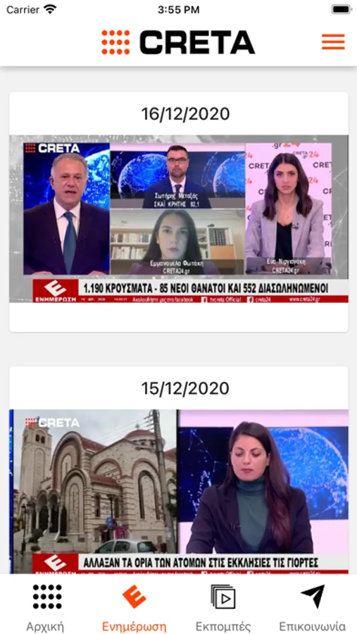 Η εφαρμογή της Τηλεόρασης CRETA, φέρνει στις κινητές συσκευές σας όλες τις αγαπημένες εκπομπές του σταθμού, όλα τα τελευταία γεγονότα από την Ελλάδα και τον κόσμο καθώς και τη δυνατότητα να παρακολουθείτε LIVE το πρόγραμμα από όπου και αν βρίσκεστε.