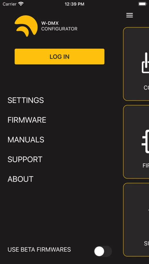 The W-DMX Configurator app is designed to make it easier to track and connect to your fixtures and devices. The key features of the app is the ability to conduct firmware updates and enable configuration of all bluetooth W-DMX products.