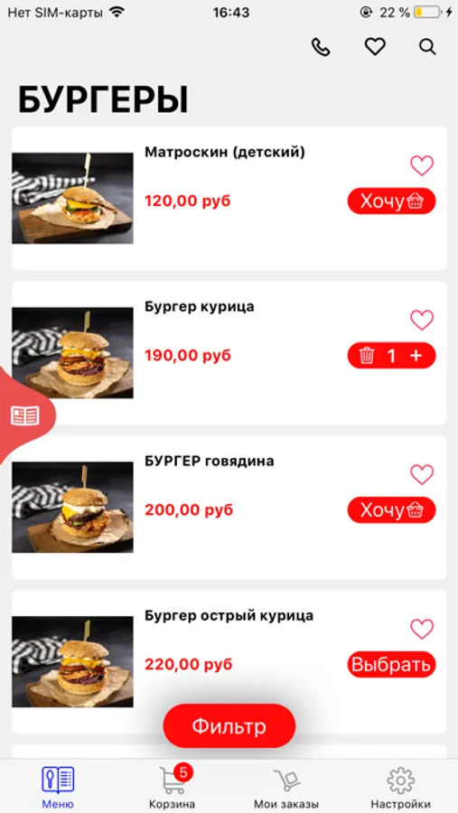 Используя мобильное приложение КрафтБургерБар, Вы с легкостью можете заказать бургеры, стейки, салаты на любой вкус и размер. Также в нашем меню Вы найдете салаты, десерты, горячие закуски, wok и не только. Доступные в приложении сортировка по цене, подробные описания и качественные фотографии блюд помогут Вам выбрать именно то, что Вы хотите.