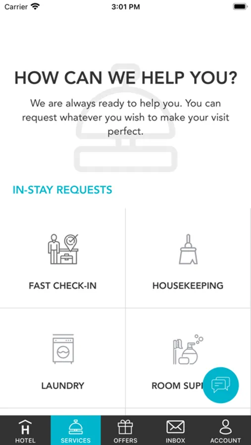 You can chat with our hotel staff regarding your guest service requests by the application and send your requests and feedback to us directly. We will be working to provide the best service instantly by evaluating the surveys regarding your experiences which we will send by the application while you are using it.