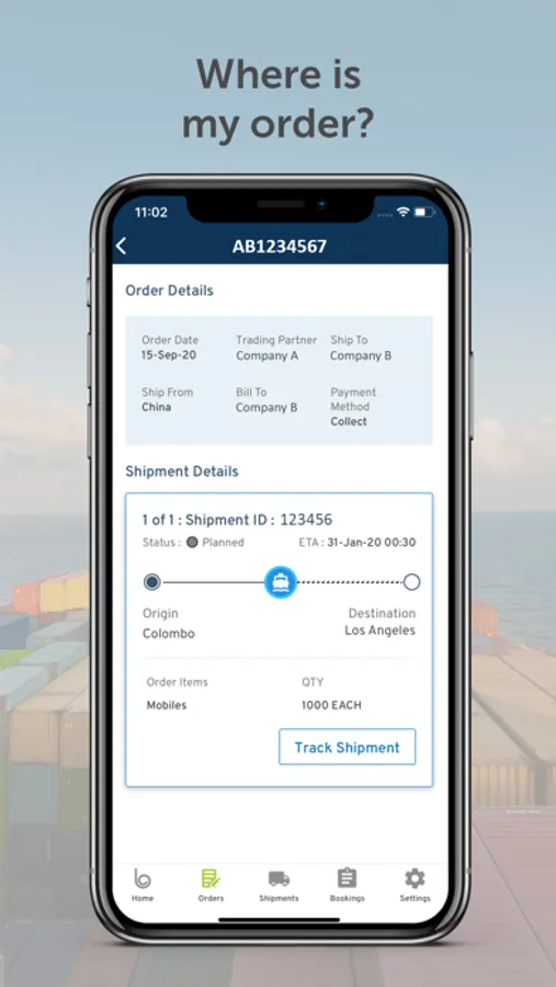 3. View all active Orders, Bookings and Shipments on your mobile device