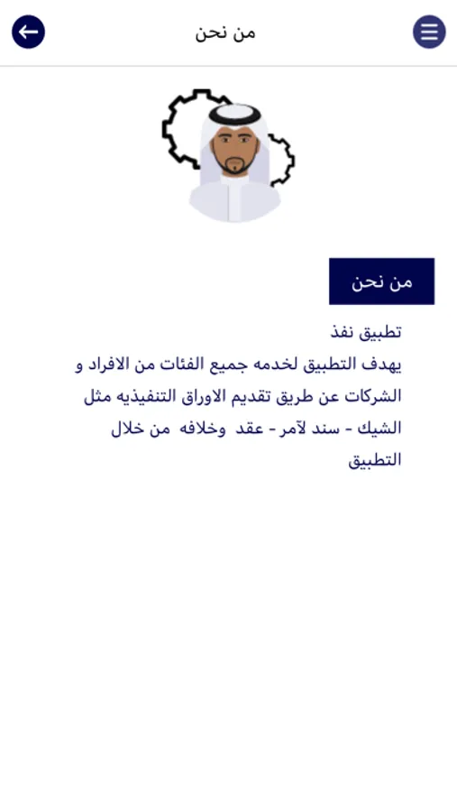 يهدف التطبيق لخدمه جميع الفئات من الافراد و الشركات عن طريق تقديم الاوراق التنفيذيه مثل الشيك - سند لآمر - عقد ٠٠٠ وخلافه من خلال التطبيق.