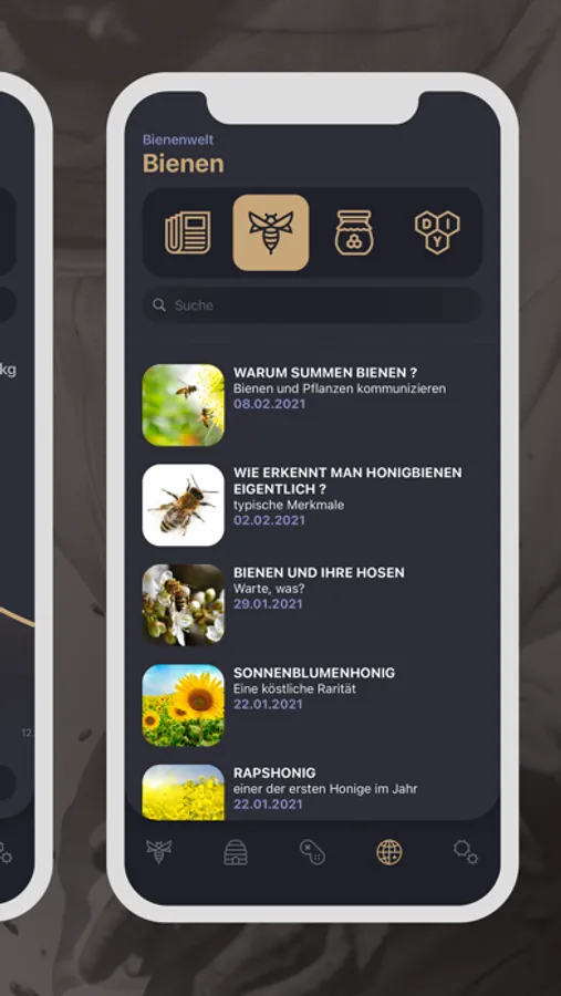 Schau deinem Imker täglich über die Schulter und lerne alles zum Thema Biene und Imkerei. Mit unserer Premiumversion betreust du deinen eigenen Bienenstock digital. Unsere Bienen stehen in einem Naturschutzgebiet, die Pflege übernimmt ein professioneller BIO-Imker.