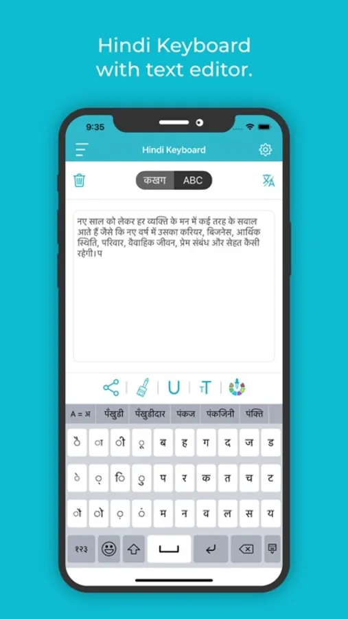 • Changing the font, the color, underlining features inbuilt in this Hindi keyboard iOS.