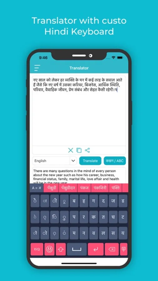• Once you’re done with your writing in Hindi, you can use the translator feature in the best Hindi Keyboard And Translator for iOS to convert the text into any other language as well.